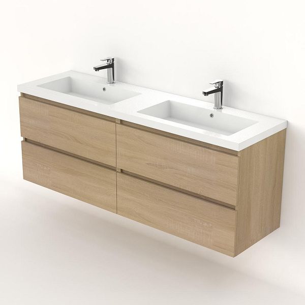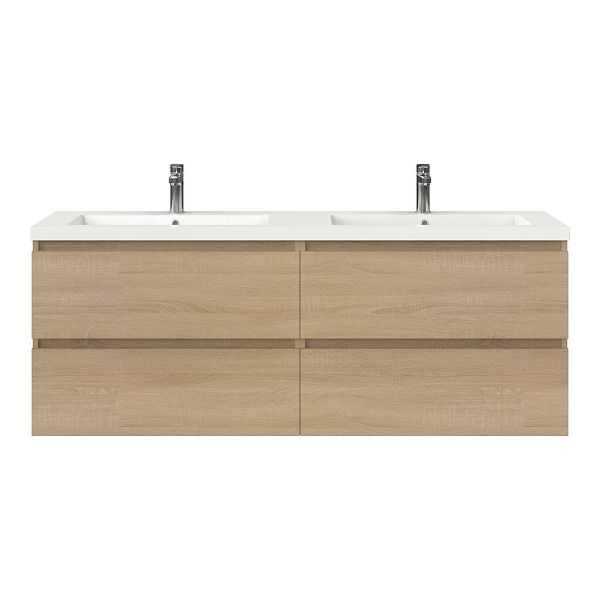 | Bellanti Elena/Esta badmeubel 160x46 4 softclose laden eiken licht greeploos polystone dubbele wastafel wit 2 kraangaten |
