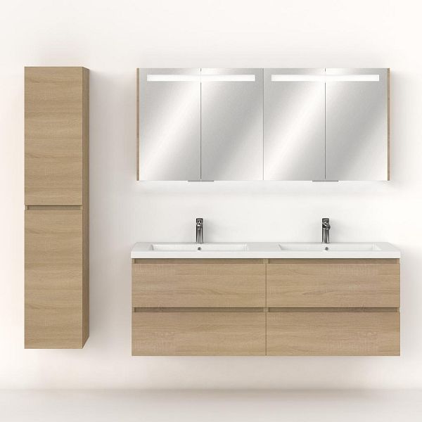 | | Bellanti Elena/Esta badmeubel 160x46 4 softclose laden eiken licht greeploos polystone dubbele wastafel wit 2 kraangaten |