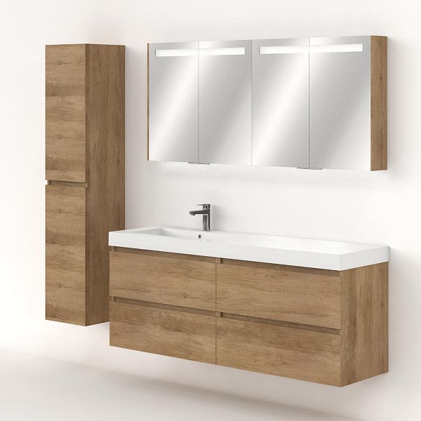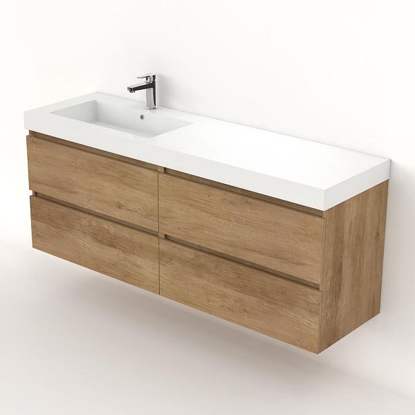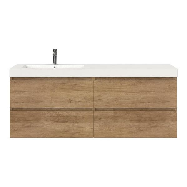 Greeploos badkamermeubel in de kleur olm is 160 cm breed. De wastafel is vervaardig in polystone en heeft de kleur wit. Dit badkamermeubel met deze wastafel is leverbaar tussen de 60 cm t/m 200 cm