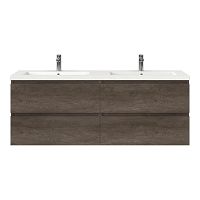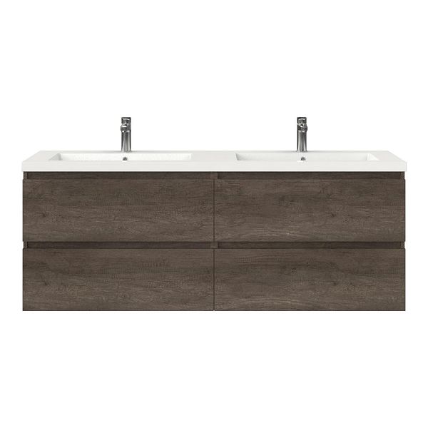 Greeploos badkamermeubel in de kleur olm donker grijs is 160 cm breed.  De wastafel is vervaardig in polystone en heeft de kleur wit. Dit badkamermeubel met deze wastafel is leverbaar tussen de 60 cm t/m 200 cm