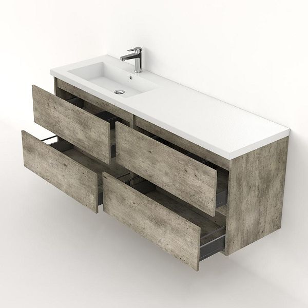 Bellanti Elena/Esta badmeubel 160x46 4 softclose laden steigerhout look grijs greeploos polystone enkele wastafel links wit met 1 kraangat