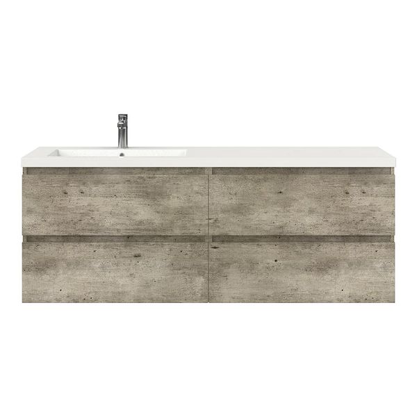 Greeploos badkamermeubel in de kleur steigerhout licht grijs is 160 cm breed.  De wastafel is vervaardig in polystone en heeft de kleur wit. Dit badkamermeubel met deze wastafel is leverbaar tussen de 60 cm t/m 200 cm
