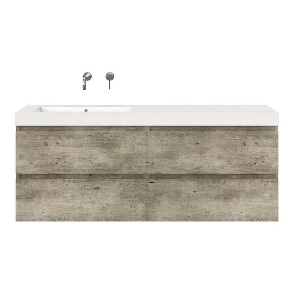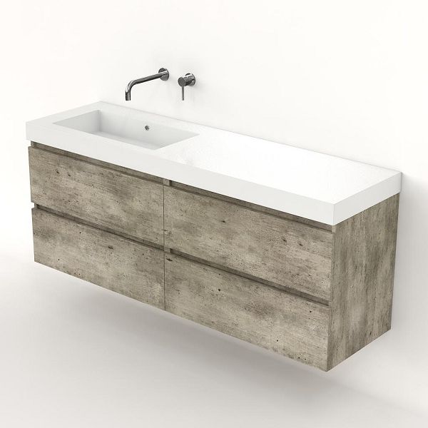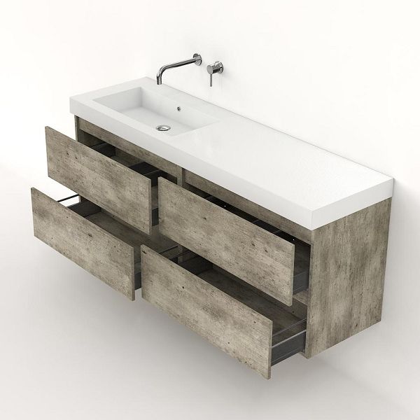Bellanti Elena/Esta badmeubel 160x46 4 softclose laden steigerhout look grijs greeploos polystone enkele wastafel links wit zonder kraangat