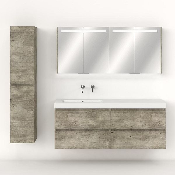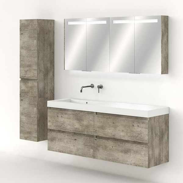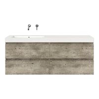 Greeploos badkamermeubel in de kleur steigerhout licht grijs is 160 cm breed.  De wastafel is vervaardig in polystone en heeft de kleur wit. Dit badkamermeubel met deze wastafel is leverbaar tussen de 60 cm t/m 200 cm
