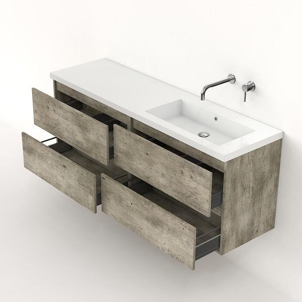| Bellanti Elena/Esta badmeubel 160x46 4 softclose laden steigerhout look grijs greeploos polystone enkele wastafel rechts wit zonder kraangat |