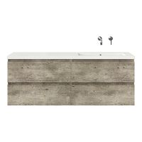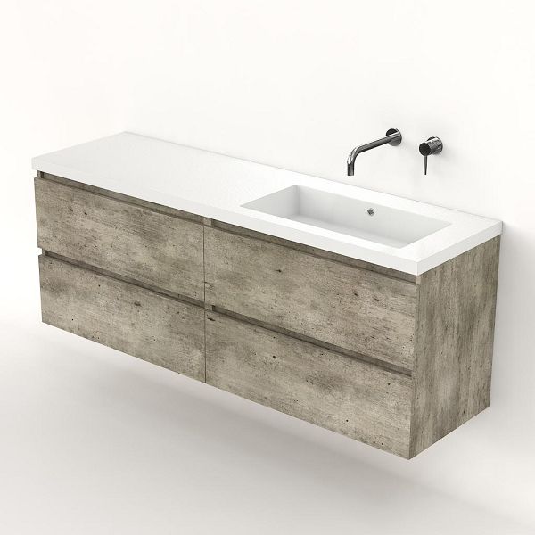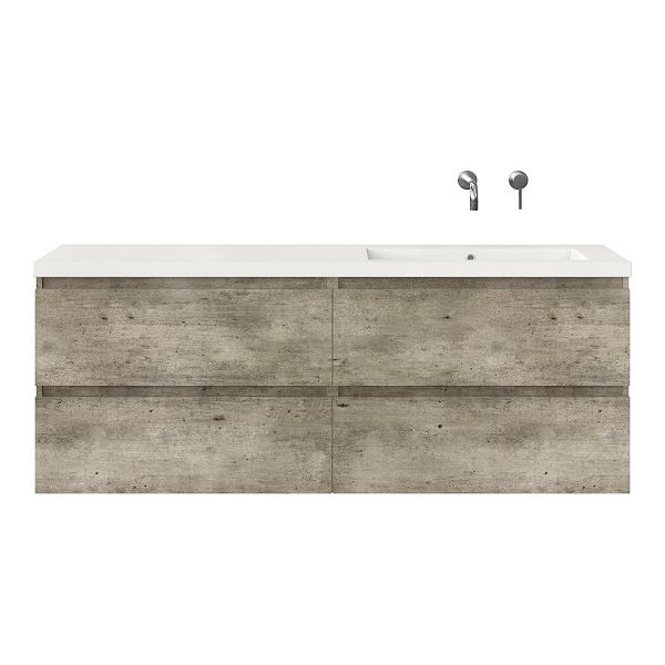 | | Bellanti Elena/Esta badmeubel 160x46 4 softclose laden steigerhout look grijs greeploos polystone enkele wastafel rechts wit zonder kraangat |