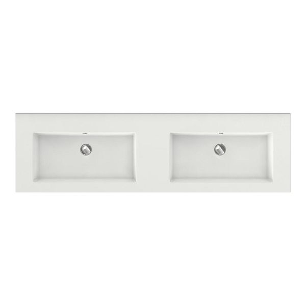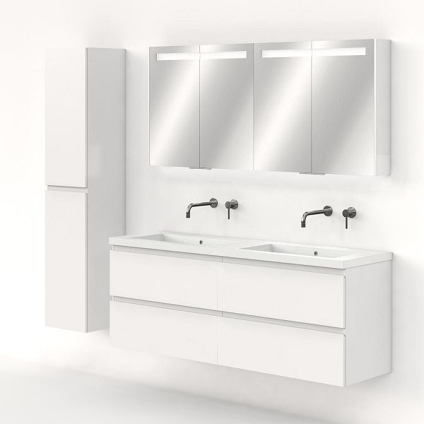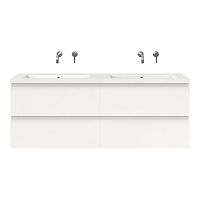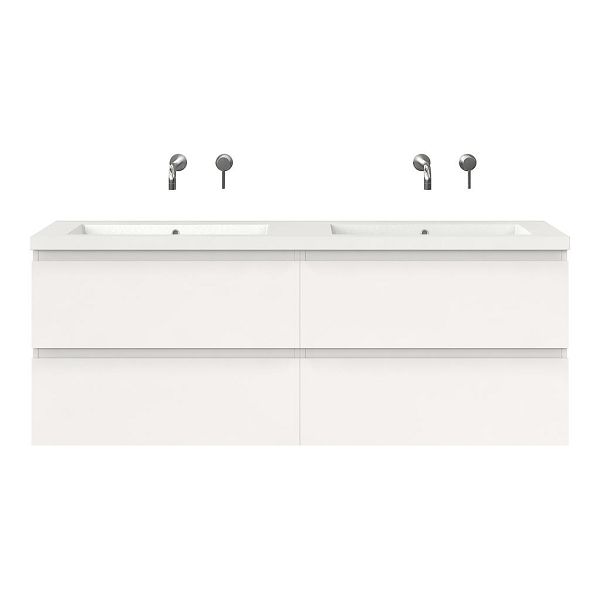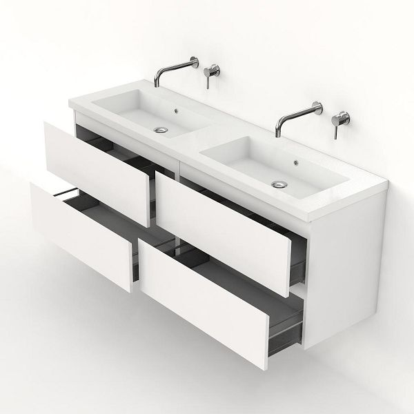 | | Bellanti Gisella/Esta badmeubel 160x46 4 softclose laden hoogglans wit greeploos polystone dubbele wastafel wit zonder kraangaten |