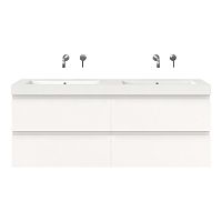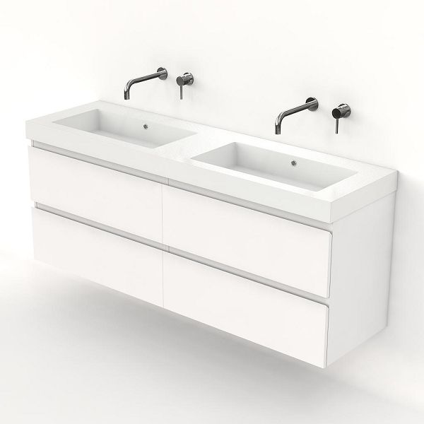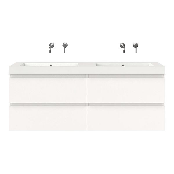 | | Bellanti Gisella/Esta badmeubel 160x46 4 softclose laden mat wit greeploos polystone dubbele wastafel wit zonder kraangaten |