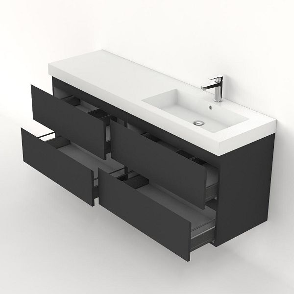 | Bellanti Gisella/Esta badmeubel 160x46 4 softclose laden mat antraciet greeploos polystone enkele wastafel rechts wit met 1 kraangat |