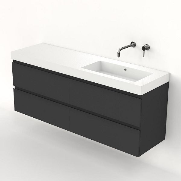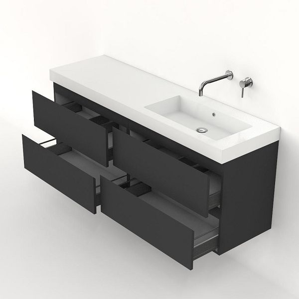 | | Bellanti Gisella/Esta badmeubel 160x46 4 softclose laden mat antraciet greeploos polystone enkele wastafel rechts zonder kraangat |