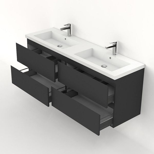 | | Bellanti Gisella/Esta badmeubel 160x46 4 softclose laden mat antraciet greeploos polystone dubbele wastafel wit met 2 kraangaten |