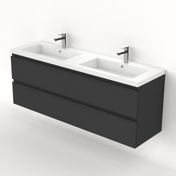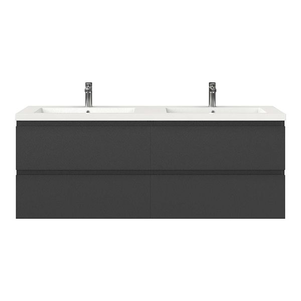 | Bellanti Gisella/Esta badmeubel 160x46 4 softclose laden mat antraciet greeploos polystone dubbele wastafel wit met 2 kraangaten |
