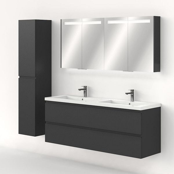 Greeploos badkamermeubel in de kleur antraciet mat is 160 cm breed. De wastafel is vervaardig in polystone en heeft de kleur wit. Dit badkamermeubel met deze wastafel is leverbaar tussen de 60 cm t/m 200 cm