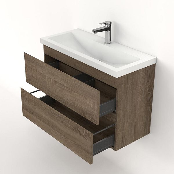| | Bellanti Secca/Lidia ondiep badmeubel 80x36 2 softclose laden donker eiken greeploos polystone wastafel wit met 1 kraangat |