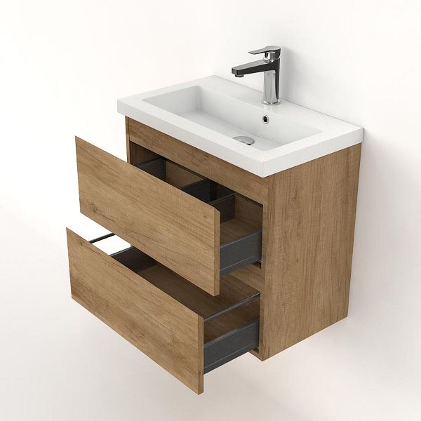 | Bellanti Secca/Esta ondiep badmeubel 60x36 2 softclose laden olm greeploos polystone wastafel wit met 1 kraangat |
