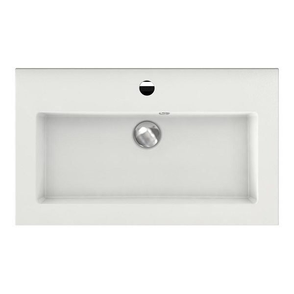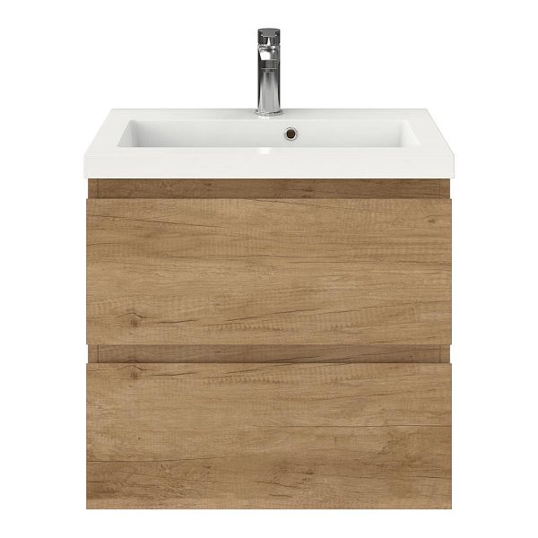 Ondiepe greeploos badkamermeubel in de kleur olm. Badmeubel is praktisch voor een compact badkamer. Het meubel van 60 cm breed is er. De wastafel is vervaardig in polystone en heeft de kleur wit. Dit badkamermeubel met deze wastafel is leverbaar tussen de 60 cm t/m 120 cm.