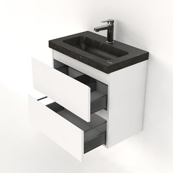 | | Bellanti Secca/Stone ondiep badmeubel 60x36 2 softclose laden mat wit greeploos natuurstenen wastafel bluestone met 1 kraangat |