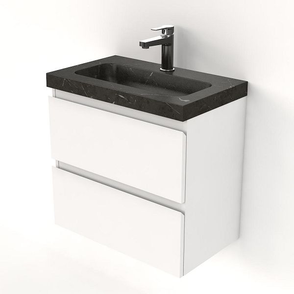 | Bellanti Secca/Stone ondiep badmeubel 60x36 2 softclose laden mat wit greeploos natuurstenen wastafel bluestone met 1 kraangat |