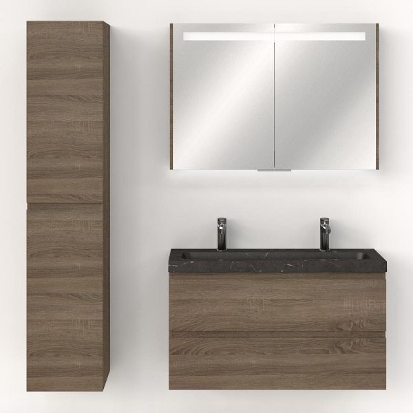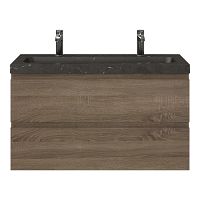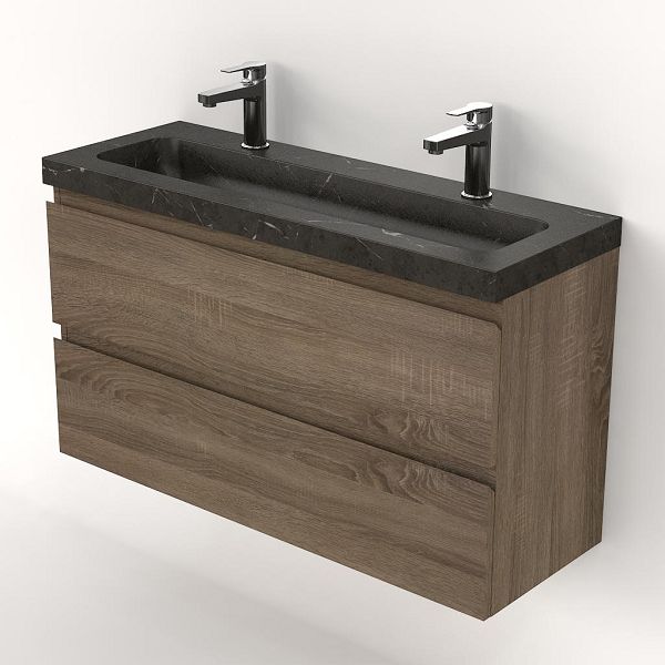| Bellanti Secca/Stone ondiep badmeubel 100x36 2 softclose laden donker eiken greeploos natuurstenen wastafel bluestone met 2 kraangaten |