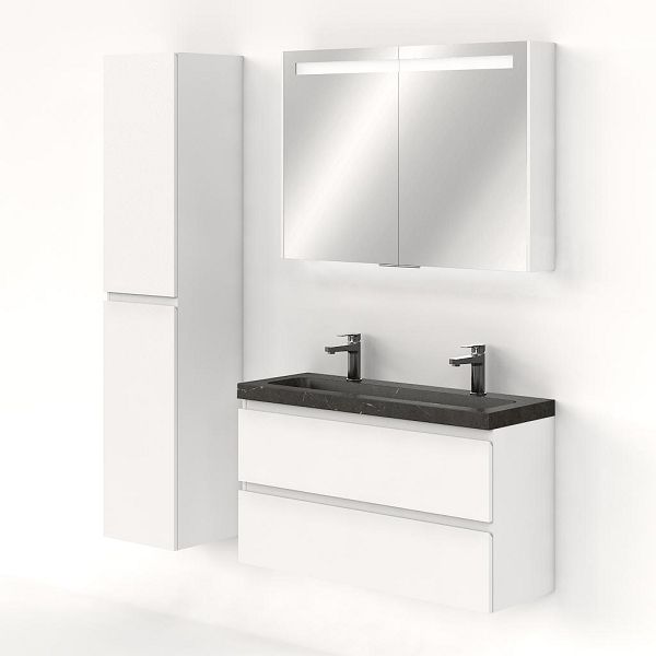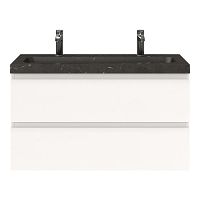 | Bellanti Secca/Stone ondiep badmeubel 100x36 2 softclose laden mat wit greeploos natuurstenen wastafel bluestone met 2 kraangaten |