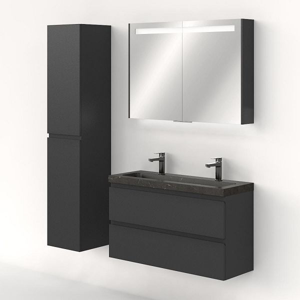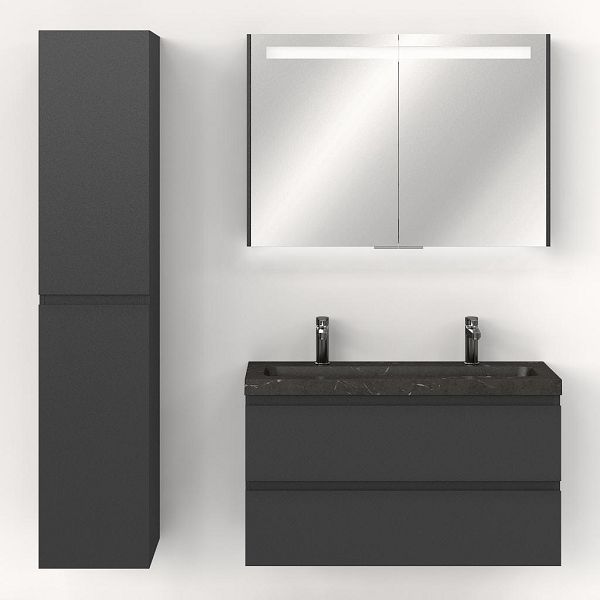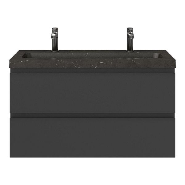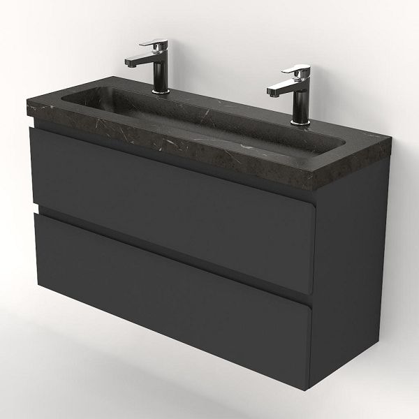 | Bellanti Secca/Stone ondiep badmeubel 100x36 2 softclose laden mat antraciet greeploos natuurstenen wastafel bluestone met 2 kraangaten |