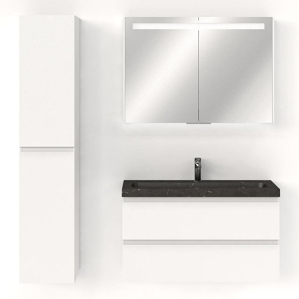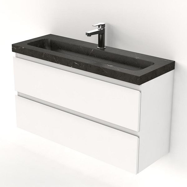 | Bellanti Secca/Stone ondiep badmeubel 100x36 2 softclose laden mat wit greeploos natuurstenen wastafel bluestone met 1 kraangat |