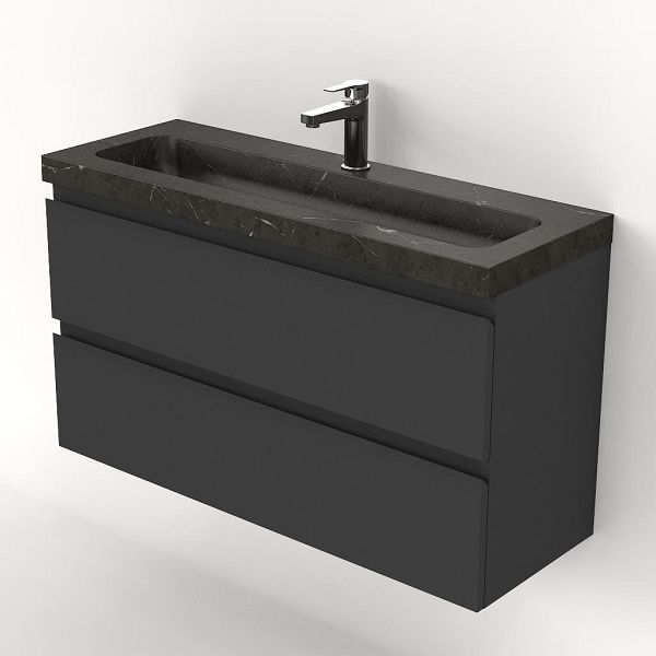 | Bellanti Secca/Stone ondiep badmeubel 100x36 2 softclose laden mat antraciet greeploos natuurstenen wastafel bluestone met 1 kraangat |