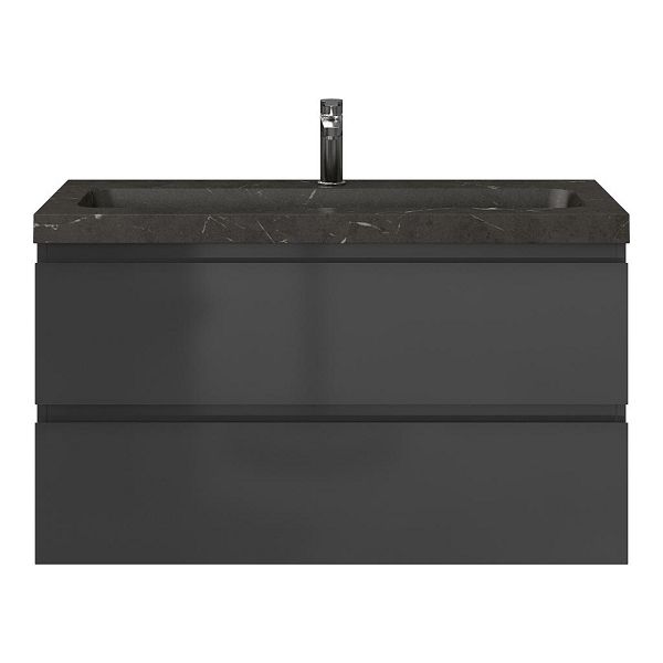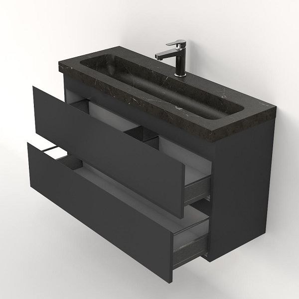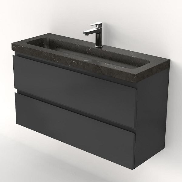 | Bellanti Secca/Stone ondiep badmeubel 100x36 2 softclose laden hoogglans antraciet greeploos natuurstenen wastafel bluestone met 1 kraangat |