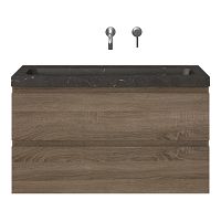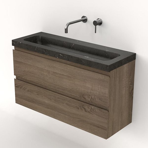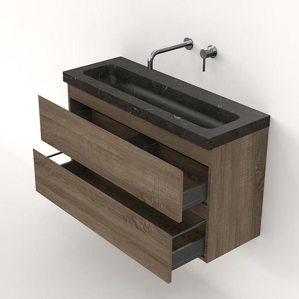 | Bellanti Secca/Stone ondiep badmeubel 100x36 2 softclose laden donker eiken greeploos natuurstenen wastafel bluestone met 0 kraangaten |