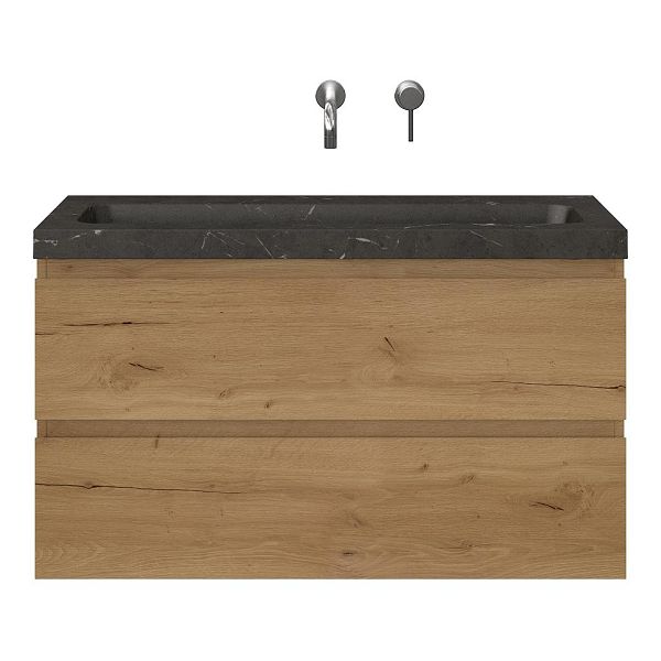 | | Bellanti Secca/Stone ondiep badmeubel 100x36 2 softclose laden natuur eiken greeploos natuurstenen wastafel bluestone met 0 kraangaten |
