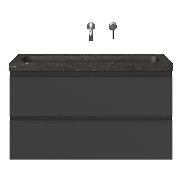| Bellanti Secca/Stone ondiep badmeubel 100x36 2 softclose laden mat antraciet greeploos natuurstenen wastafel bluestone met 0 kraangaten |