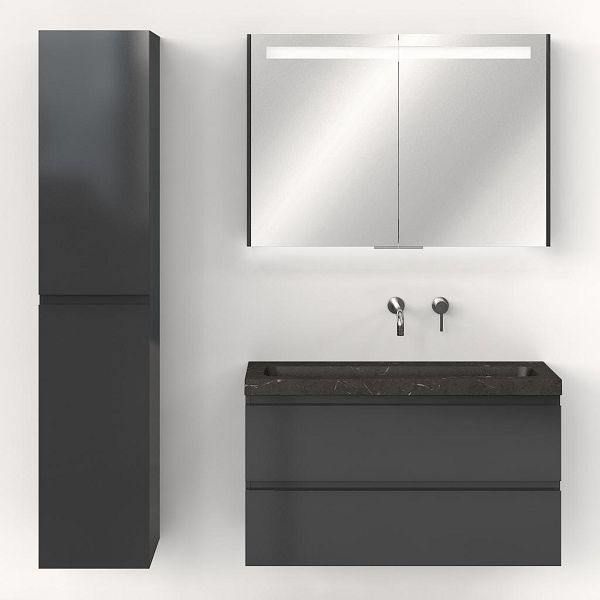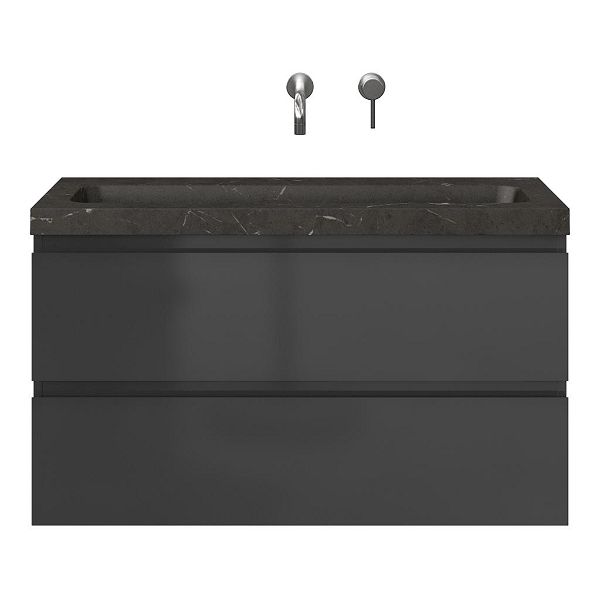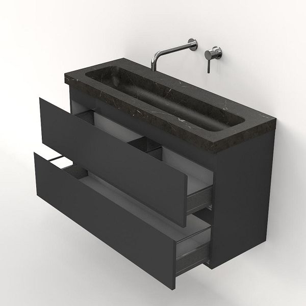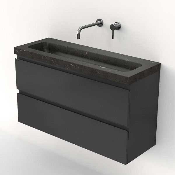 | Bellanti Secca/Stone ondiep badmeubel 100x36 2 softclose laden hoogglans antraciet greeploos natuurstenen wastafel bluestone met 0 kraangaten |