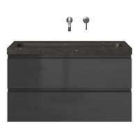 | | Bellanti Secca/Stone ondiep badmeubel 100x36 2 softclose laden hoogglans antraciet greeploos natuurstenen wastafel bluestone met 0 kraangaten |
