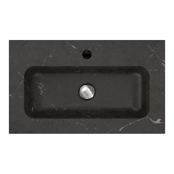 | Bellanti Fabia/stone ondiep badmeubel 60x36 2 softclose laden grijs steigerhout look greeploos natuursteen bluestone wastafel met 1 kraangat |