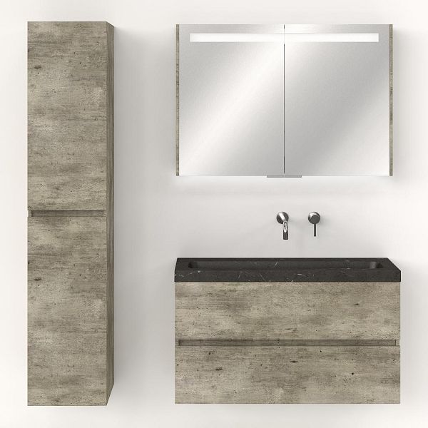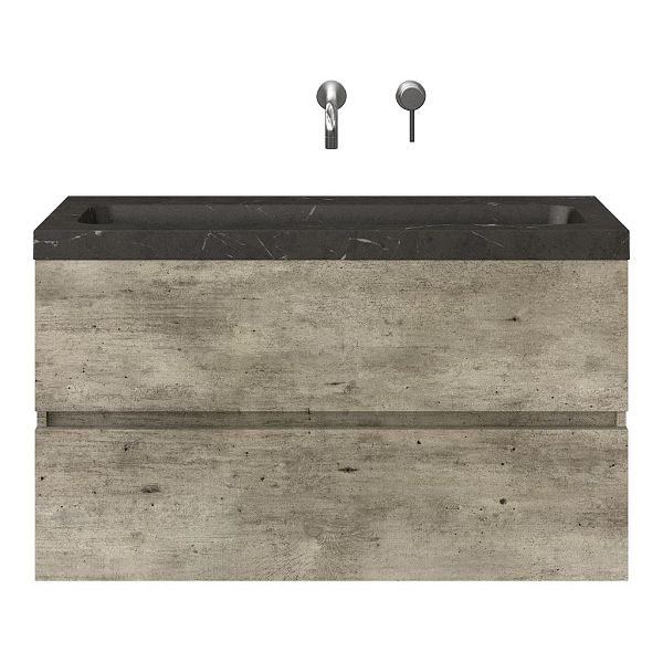 | Bellanti Fabia/stone ondiep badmeubel 100x36 2 softclose laden grijs steigerhout look greeploos natuursteen bluestone wastafel zonder kraangaten |