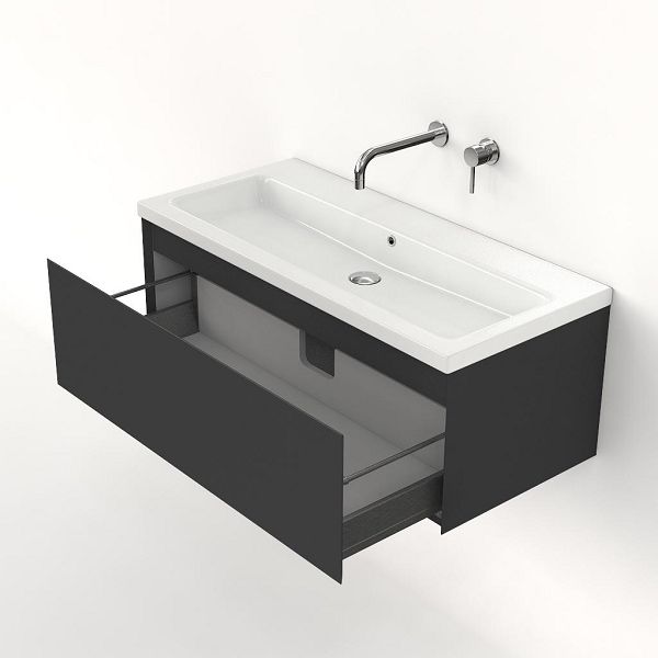 | Bellanti Solo/Amelia badmeubel 100x46 1 softclose lade antraciet mat greeploos keramische wastafel wit glans zonder kraangaten |