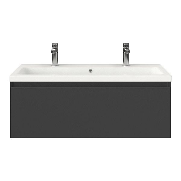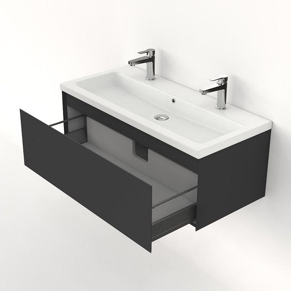 | Bellanti Solo/Amelia badmeubel 100x46 1 softclose lade antraciet mat greeploos keramische wastafel wit mat met 2 kraangaten |