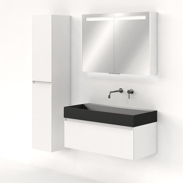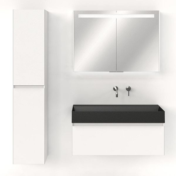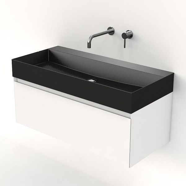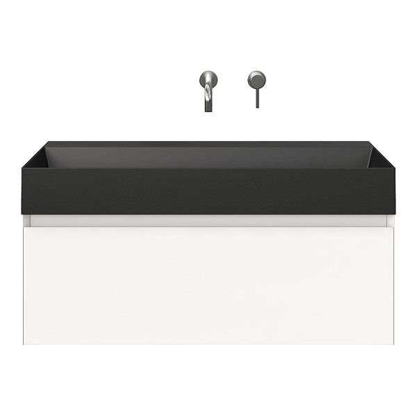 Greeploos badkamermeubel in de kleur wit mat is 100 cm breed. De wastafel is vervaardig in keramiek en heeft de kleur antraciet mat keramiek. Dit badkamermeubel met deze wastafel is leverbaar tussen de 60 cm t/m 160 cm
