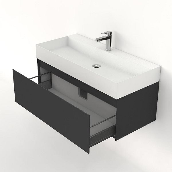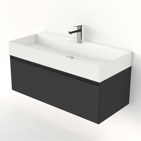 | Bellanti Solo/Azzurra badmeubel 100x46 1 softclose lade antraciet mat greeploos keramische wastafel wit mat met 1 kraangat |