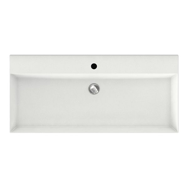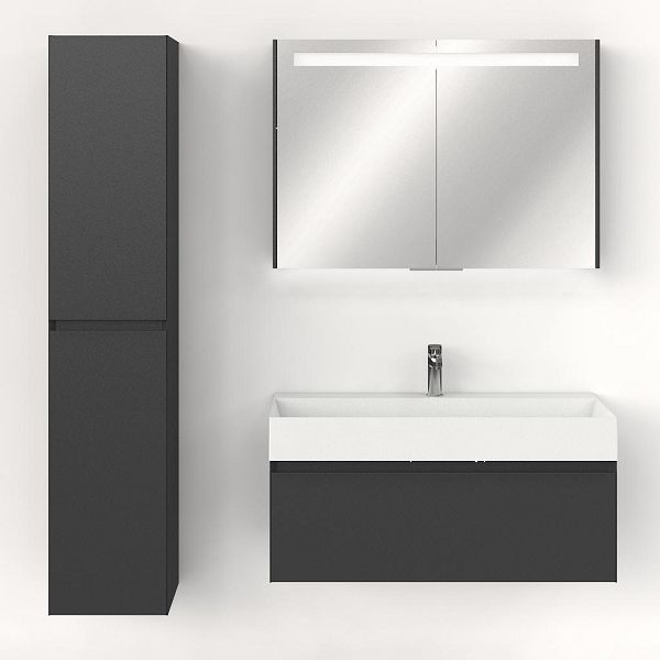 Greeploos badkamermeubel in de kleur antraciet mat is 100 cm breed. De wastafel is vervaardig in keramiek en heeft de kleur wit mat keramiek. Dit badkamermeubel met deze wastafel is leverbaar tussen de 60 cm t/m 160 cm