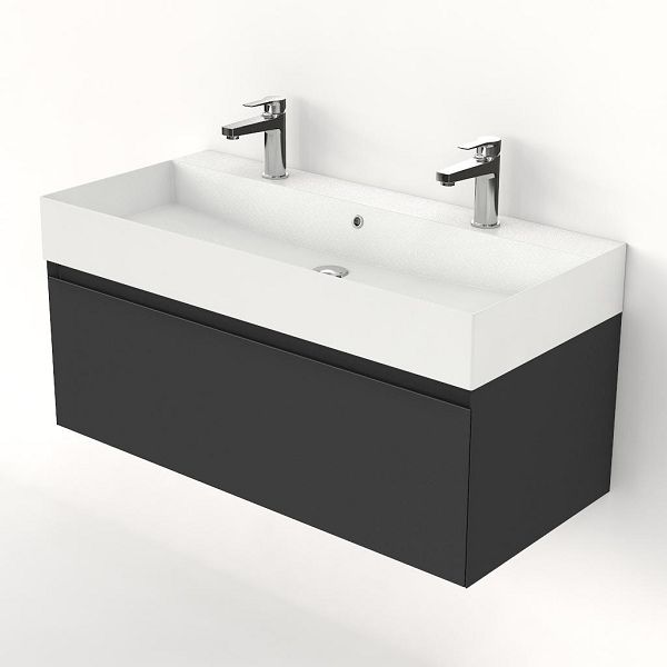 Bellanti Solo/Azzurra badmeubel 100x46 1 softclose lade antraciet mat greeploos keramische wastafel wit mat met 2 kraangaten