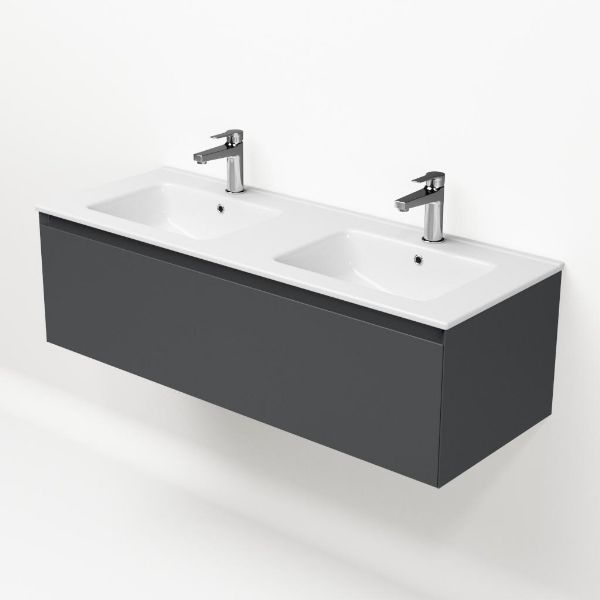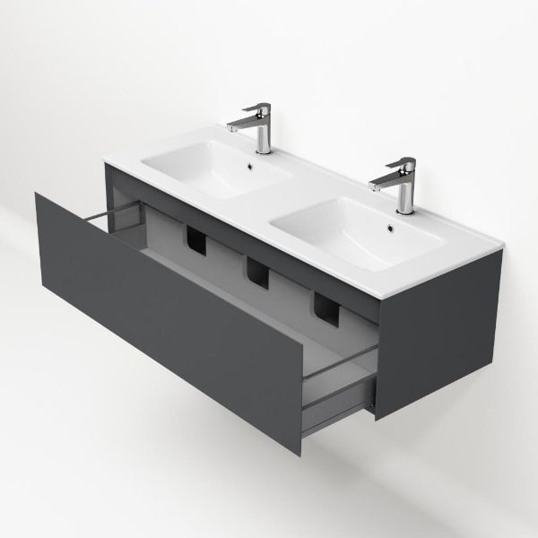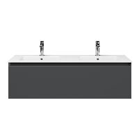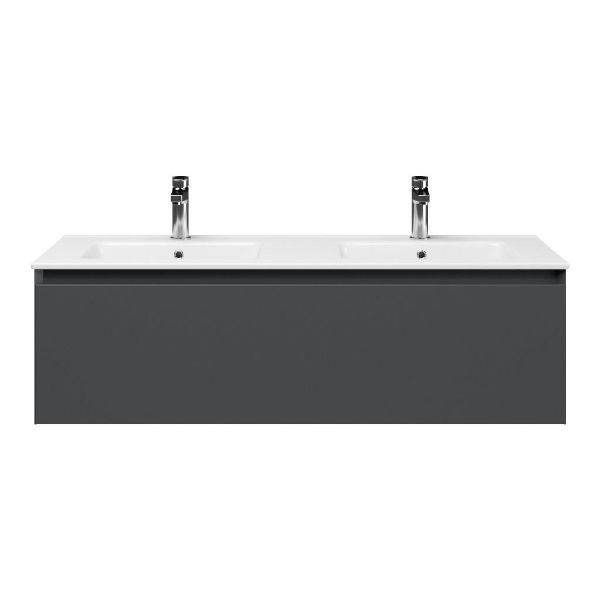 | Bellanti Solo/Etna badmeubel 120x46 1 softclose lade antraciet mat greeploos keramische wastafel dubbel wit met 2 kraangaten |