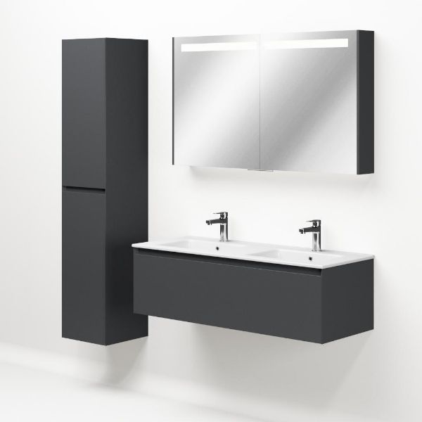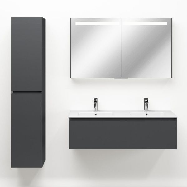 | | Bellanti Solo/Etna badmeubel 120x46 1 softclose lade antraciet mat greeploos keramische wastafel dubbel wit met 2 kraangaten |
