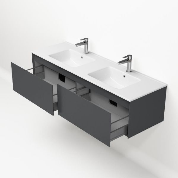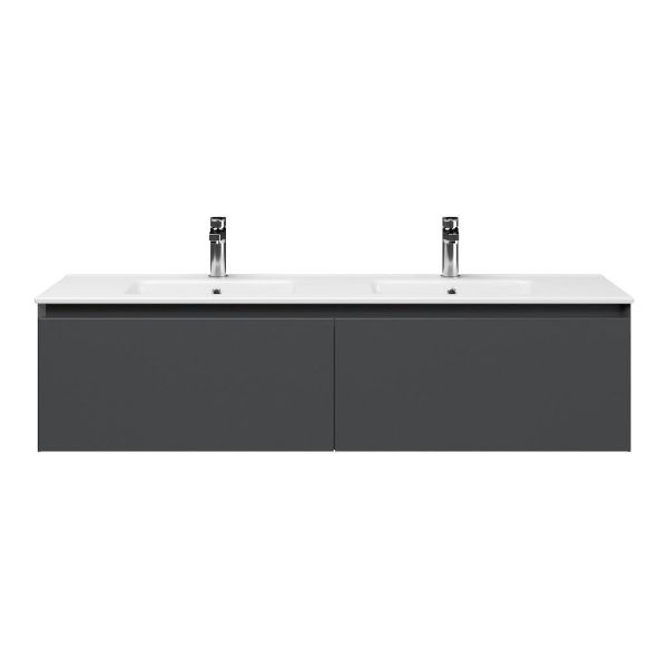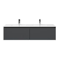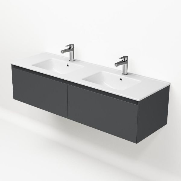 | Bellanti Solo/Etna badmeubel 140x46 2 softclose laden antraciet mat greeploos keramische wastafel dubbel wit met 2 kraangaten |