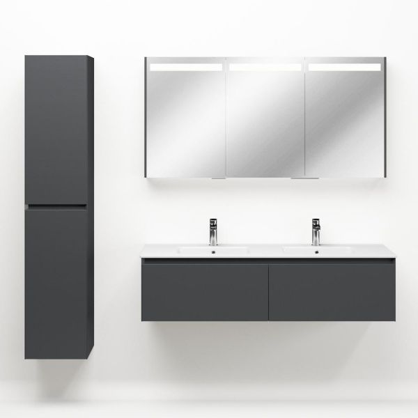 Greeploos badkamermeubel in de kleur antraciet mat is 140 cm breed. De wastafel is vervaardig in keramiek en heeft de kleur wit keramiek. Dit badkamermeubel met deze wastafel is leverbaar tussen de 60 cm t/m 120 cm