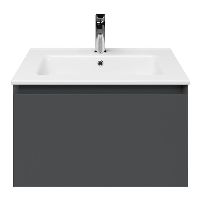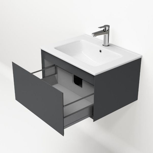 Greeploos badkamermeubel in de kleur antraciet mat is 60 cm breed. De wastafel is vervaardig in keramiek en heeft de kleur wit keramiek. Dit badkamermeubel met deze wastafel is leverbaar tussen de 60 cm t/m 120 cm