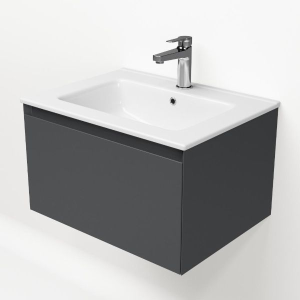 | | Bellanti Solo/Etna badmeubel 60x46 1 softclose lade antraciet mat greeploos keramische wastafel wit met 1 kraangat |