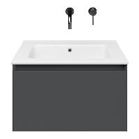 | | Bellanti Solo/Etna badmeubel 60x46 1 softclose lade antraciet mat greeploos keramische wastafel wit zonder kraangaten |
