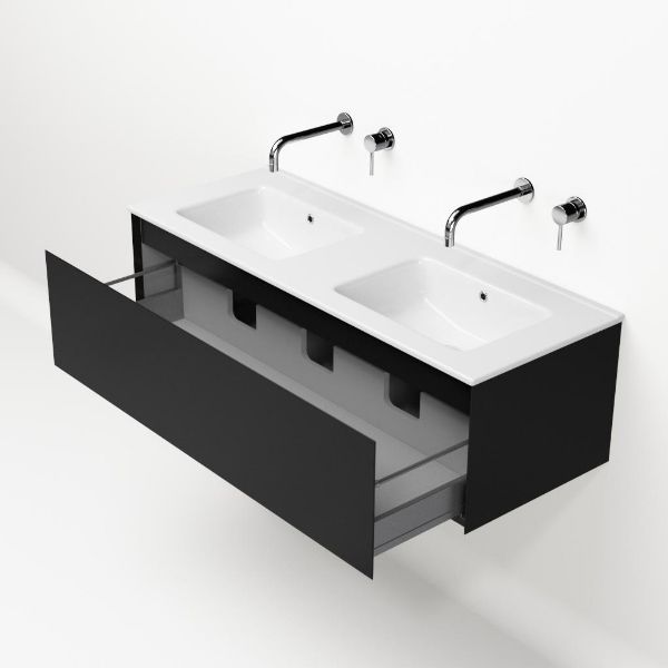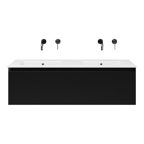 | | Bellanti Solo/Etna badmeubel 120x46 1 softclose lade zwart mat greeploos keramische wastafel dubbel wit zonder kraangat |