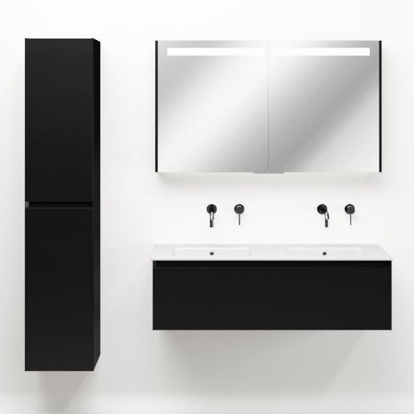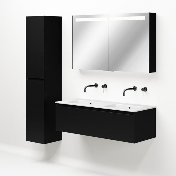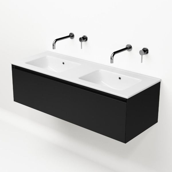 | Bellanti Solo/Etna badmeubel 120x46 1 softclose lade zwart mat greeploos keramische wastafel dubbel wit zonder kraangat |